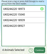 If you have the Stick Reader model that contains an internal memory, you can read the animals into groups on the reader then download a particular group to the phone or tablet. To add a group from Stick Reader memory: