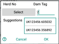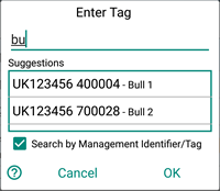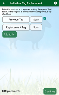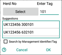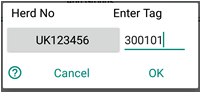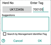 Entering tags numbers for new animals not on holding
