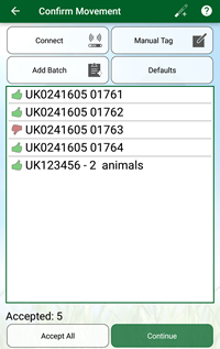Animal identifiers can be added to a request (e.g. movement) in four different ways. Press the 'Add Animals' button in the appropriate recording action then:
